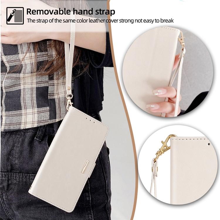 Funda de cuero con cadena cruzada para iPhone 17 (blanca)