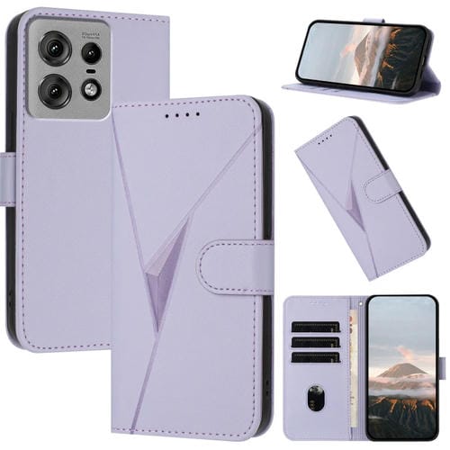 Funda de Cuero con Cierre de Hebilla y Diseño Triangular para Motorola Edge 50 Pro (Morado Claro)