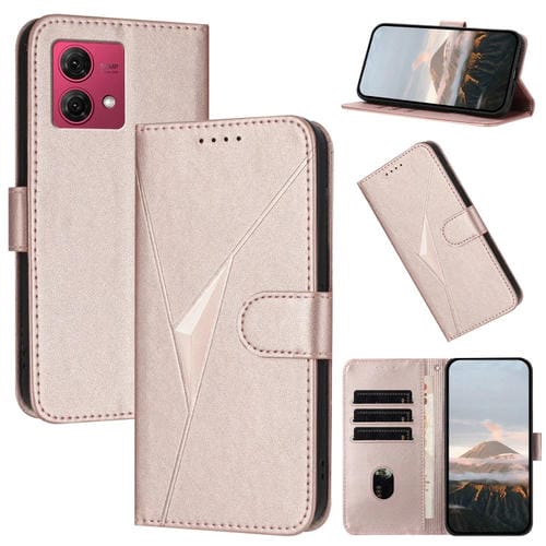 Funda de Cuero con Cierre de Hebilla y Diseño Triangular para Motorola Moto G84 5G (Oro Rosa)