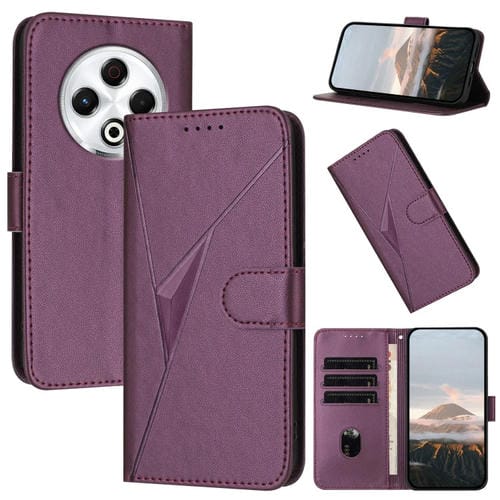 Funda de Cuero para Tecno Spark 30 4G con Cierre de Hebilla y Diseño Triangular (Morado Oscuro)