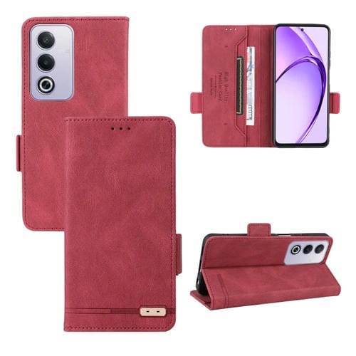 Funda de Cuero con Cierre Magnético Global para Oppo A3 Pro 5G (Rojo)