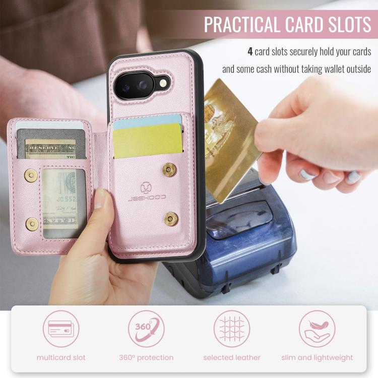 Funda de Cuero con Cierre Magnético Rfid para Google Pixel 9A Jeehood J05 Business (Rosa)