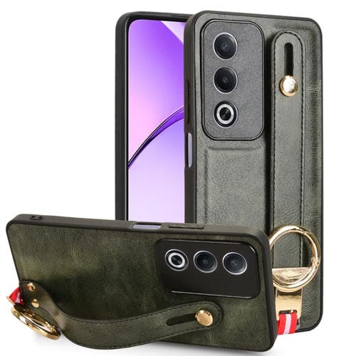 Funda de Cuero con Correa para la Muñeca para Oppo A3 Pro India (Verde)