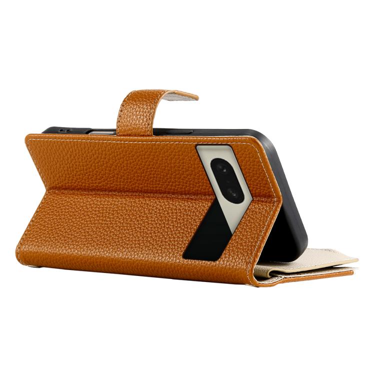 Funda de cuero con cremallera para Google Pixel 8, con múltiples tarjetas y costuras, con correa corta (marrón)