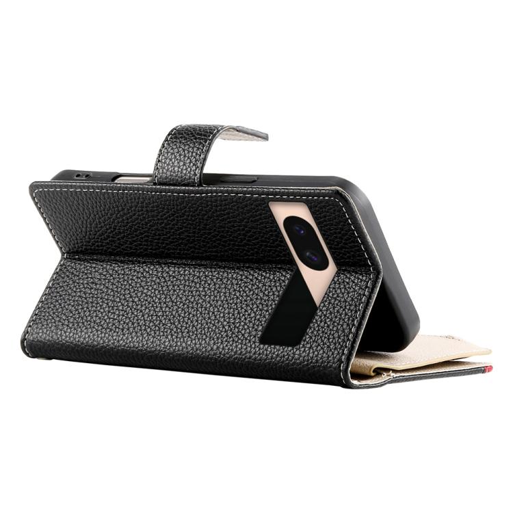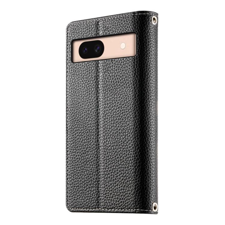 Funda de cuero con cremallera para Google Pixel 8a, con múltiples tarjetas y costuras, con correa corta (negra)