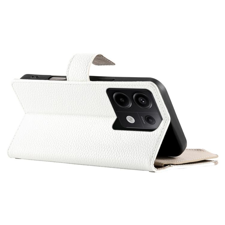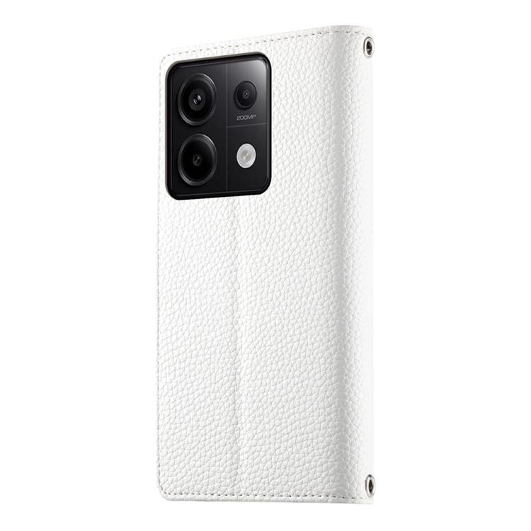 Funda de cuero con cremallera para Redmi Note 13 Pro y Xiaomi Poco X6, con costuras, para múltiples tarjetas y correa corta (blanca)