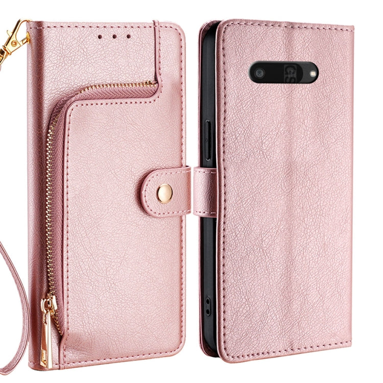 Funda de Cuero con Cremallera para Kyocera Digno Sx4 5G (Oro Rosa)