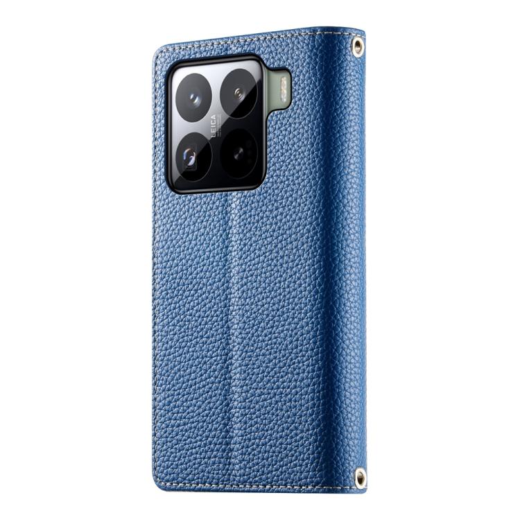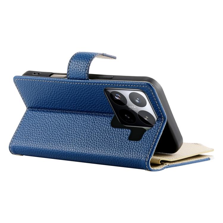 Funda de cuero con cremallera para Xiaomi 15 Pro, con múltiples tarjetas y costuras, con correa corta (azul oscuro)