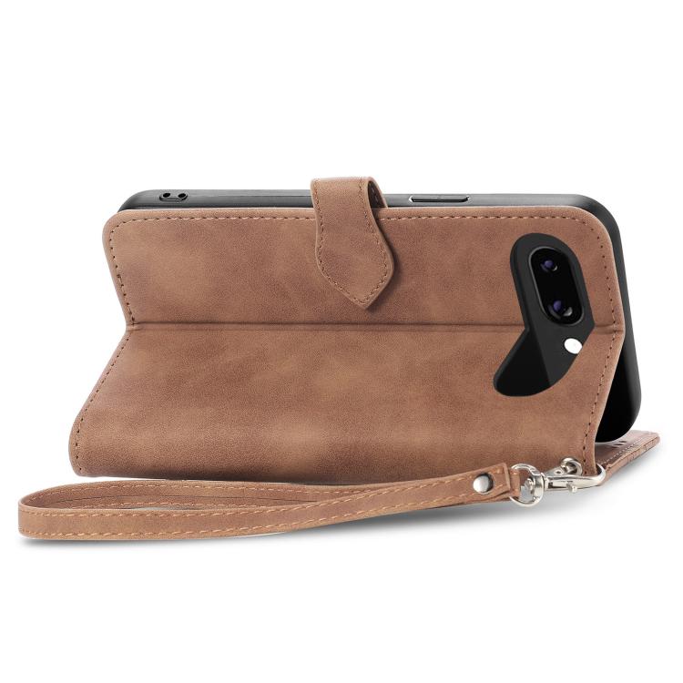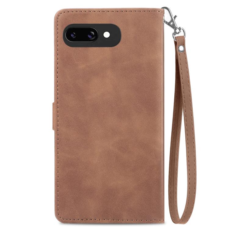 Funda de Cuero con Cremallera y Flores en Relieve para Google Pixel 9A (Marrón)