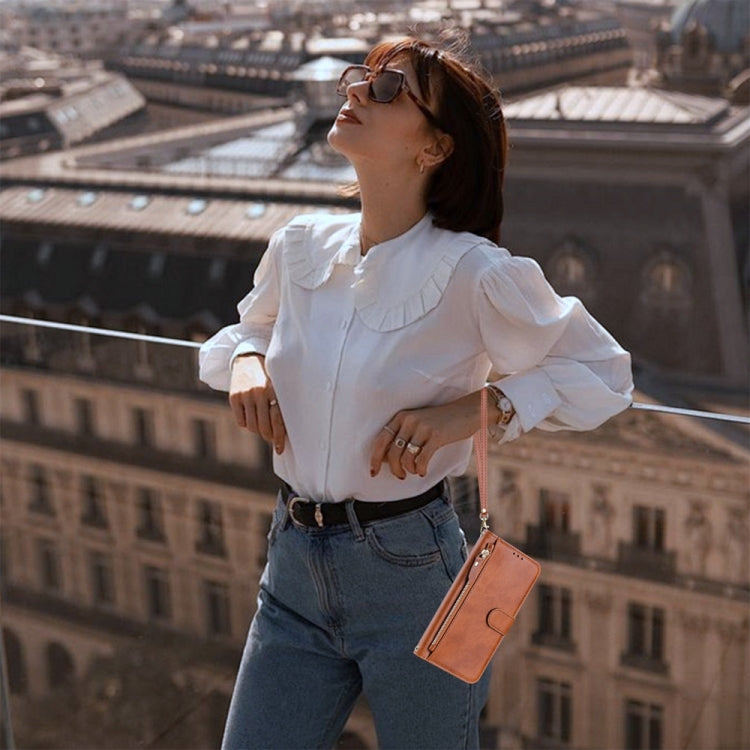 Funda de Cuero con Cremallera y Ranuras para Tarjetas para Sharp Aquos Sense9 Plus (Marrón)