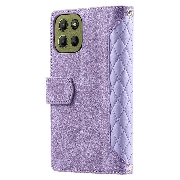 Funda de Cuero con Cremallera y Textura de Cuadrícula para Motorola Moto G15 con Cordón (Morado)