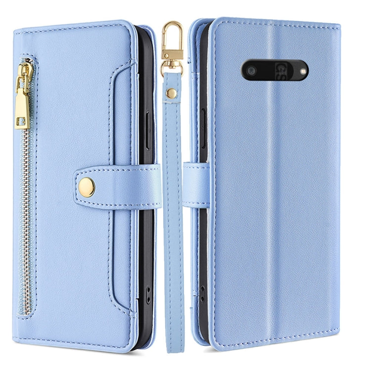 Funda de Cuero con Cremallera y Textura de Oveja para Kyocera Digno Sx4 5G (Azul)