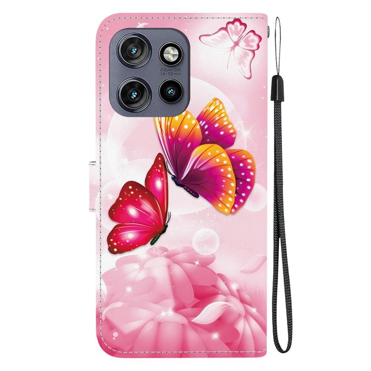 Funda de Cuero con Dibujo y Textura de Cristal para Motorola Edge 50 Neo 5G (Mariposas Rosas)
