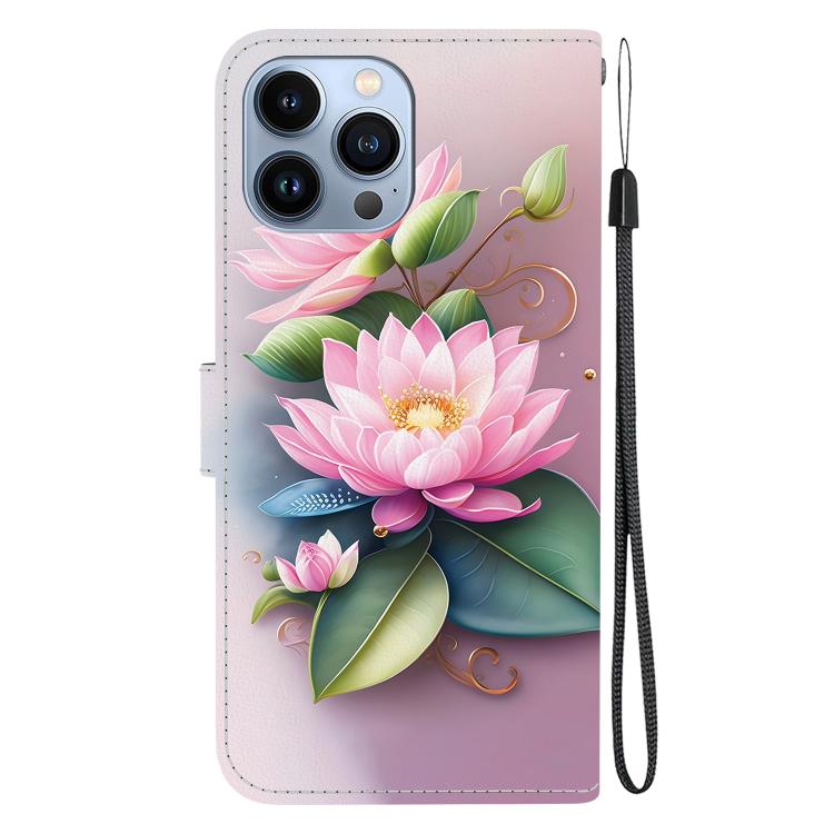 Funda de Cuero iPhone 13 Pro Max Dibujo de Colores Textura de Cristal (Lotus)