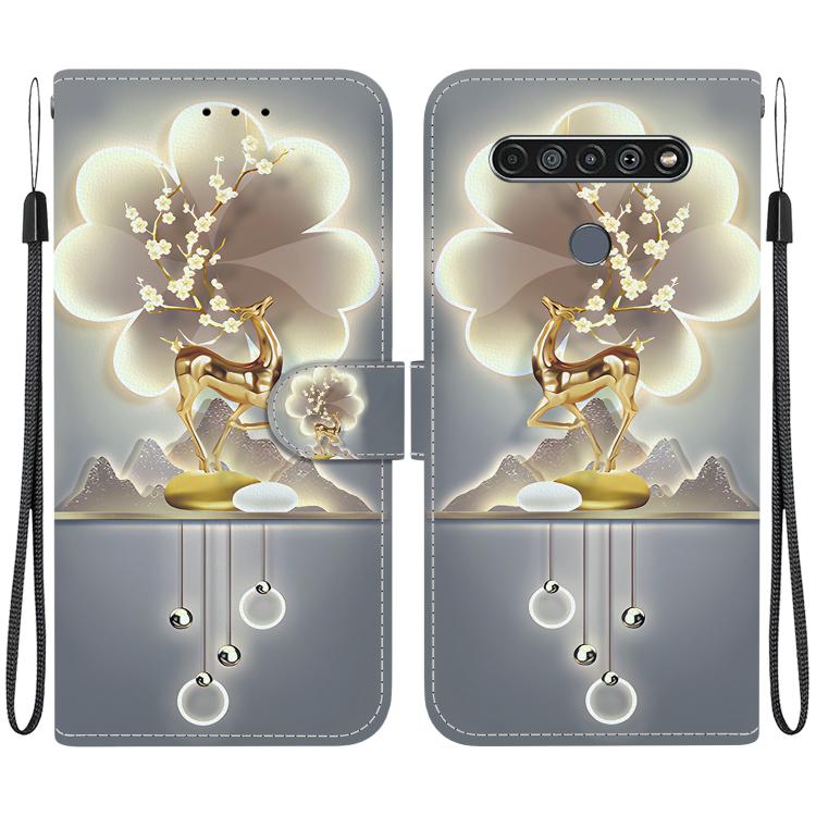 Funda de Cuero LG K61 con Dibujo de Colores y Textura de Cristal (Ciervo Sika)