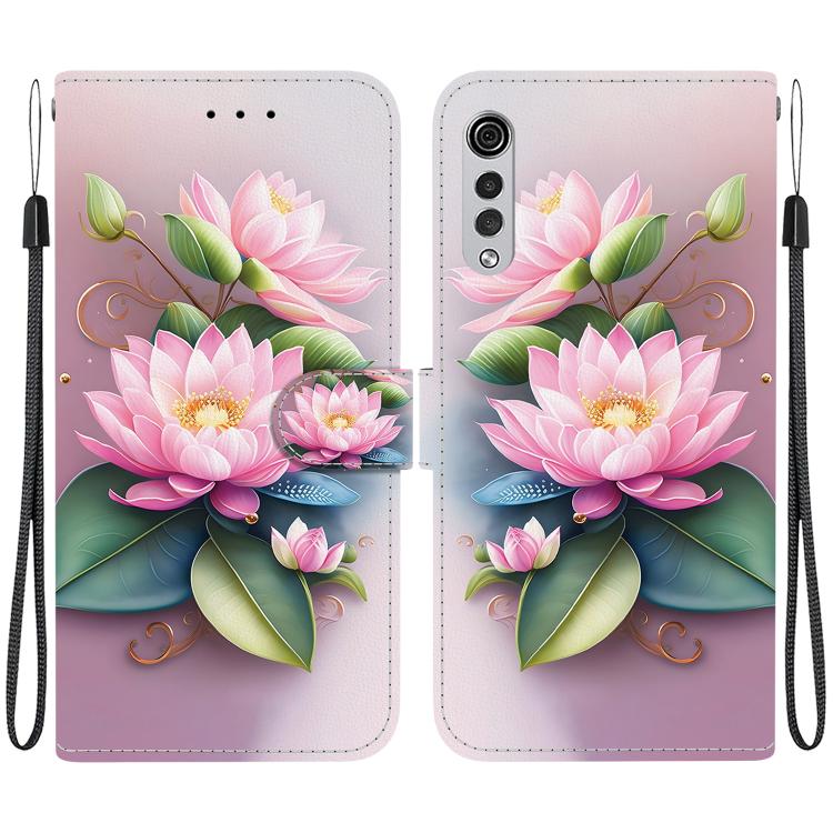 Funda de Cuero LG Velvet 5G/G9 4G con Dibujo de Colores y Textura de Cristal (Lotus)