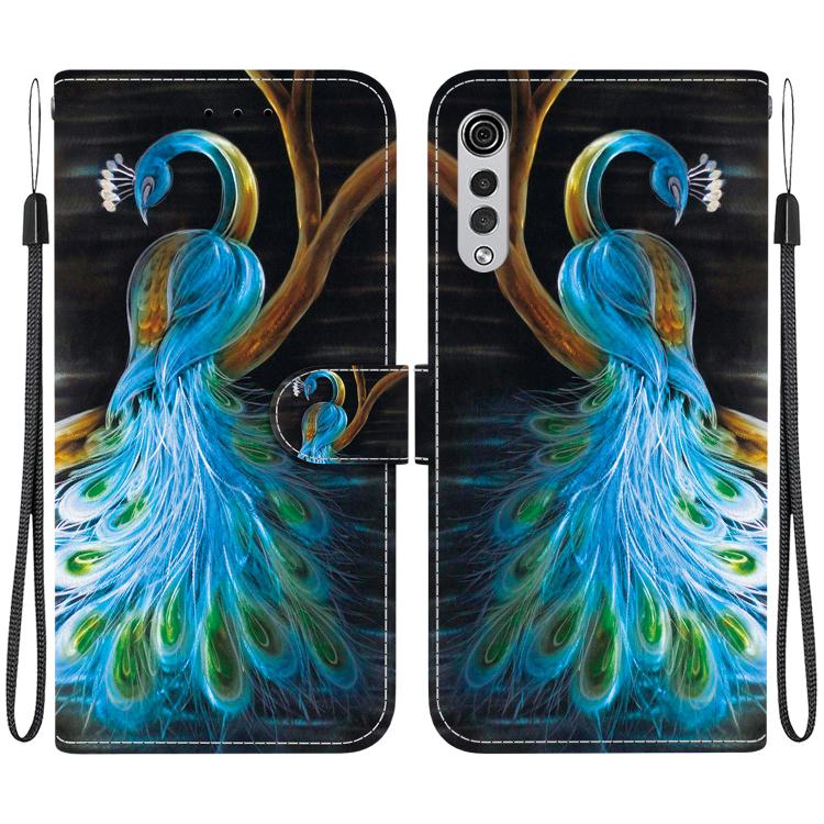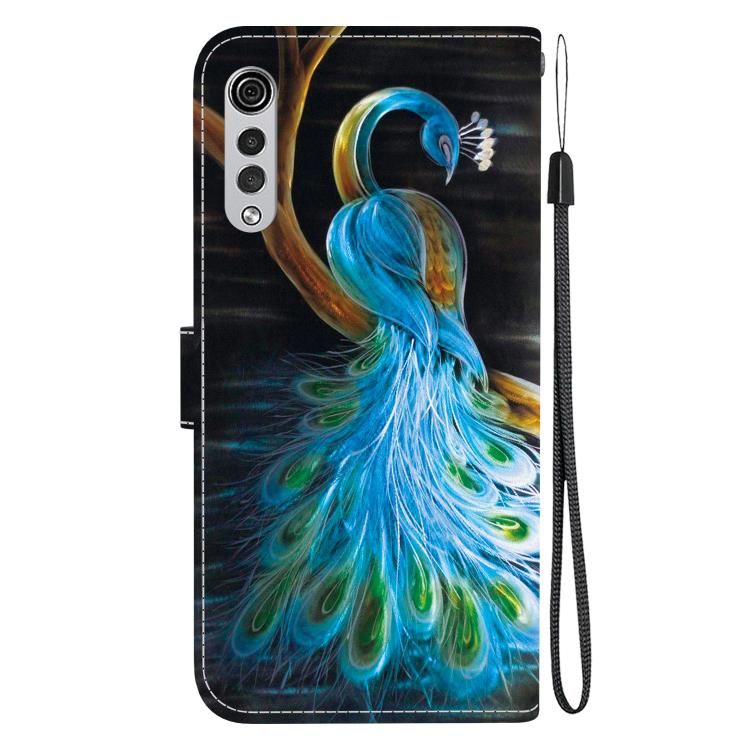 Funda de Cuero con Dibujo y Textura de Cristal para LG Velvet 5G/G9 4G (Pavo Real)