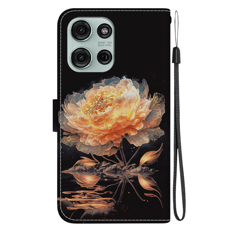Funda de Cuero Motorola Moto G75 5G con Dibujo de Colores y Textura de Cristal (Peonía Dorada)