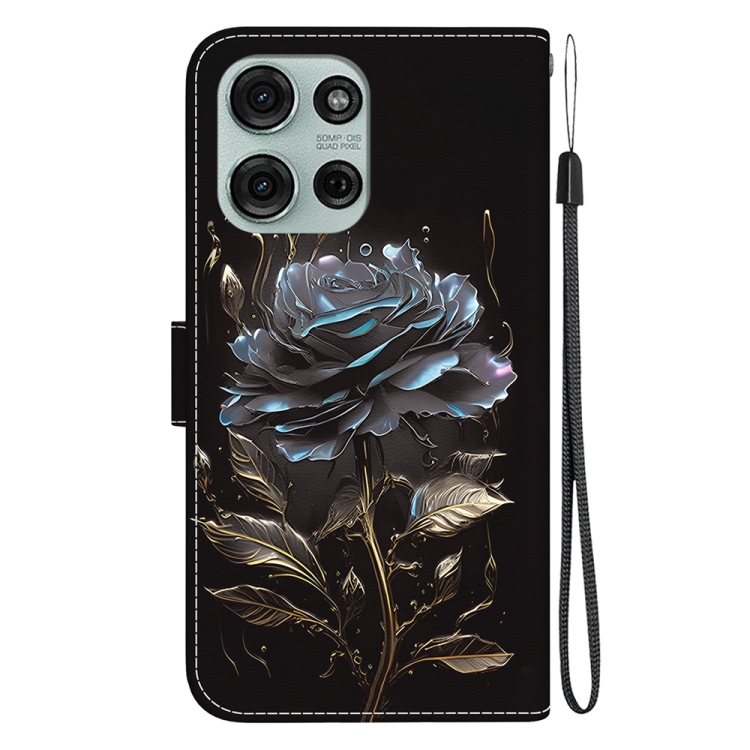 Funda de Cuero para Motorola Moto G75 5G con Dibujo de Colores y Textura de Cristal (Rosa Negra)