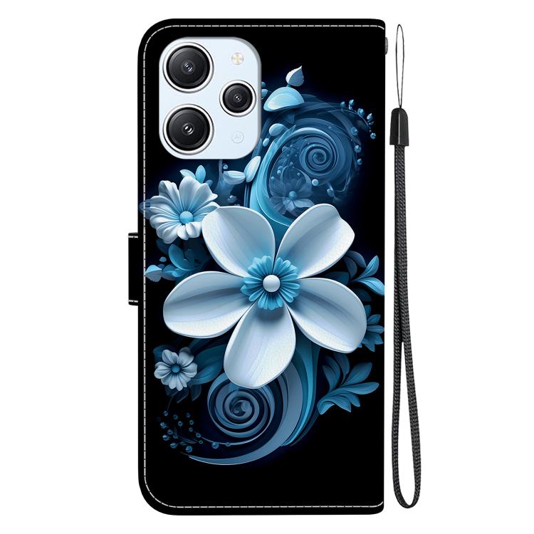 Funda de Cuero con Dibujo de Colores y Textura de Cristal para Redmi 12 4G/5G/Poco M6 Pro (Orquídea Negra)