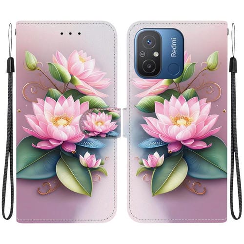 Funda de Cuero con Dibujo de Colores y Textura de Cristal para Redmi 12C/11A (Lotus)