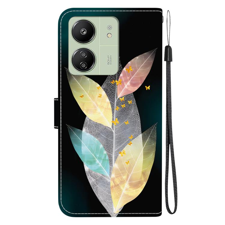 Funda de Cuero con Dibujo de Colores y Textura de Cristal para Redmi 13C 4G / 5G / 13R 5G (Hojas de Colores)