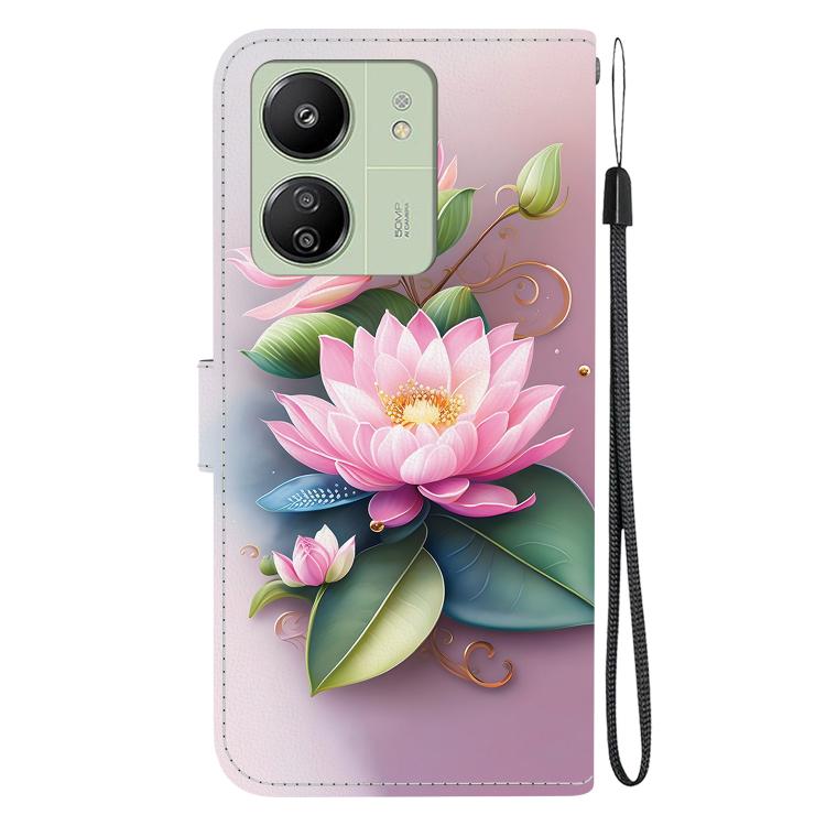 Funda de Cuero con Dibujo de Colores y Textura de Cristal para Redmi 13C 4G / 5G / 13R 5G (Lotus)