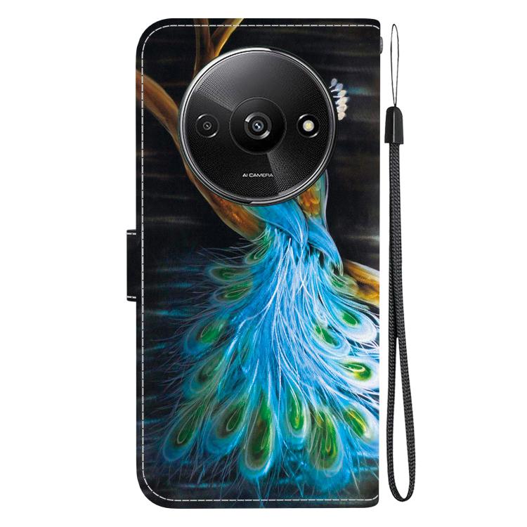 Funda de Cuero con Dibujo de Colores y Textura de Cristal para Redmi A3 (Pavo Real)
