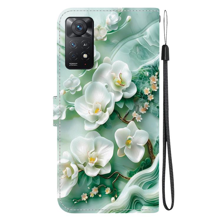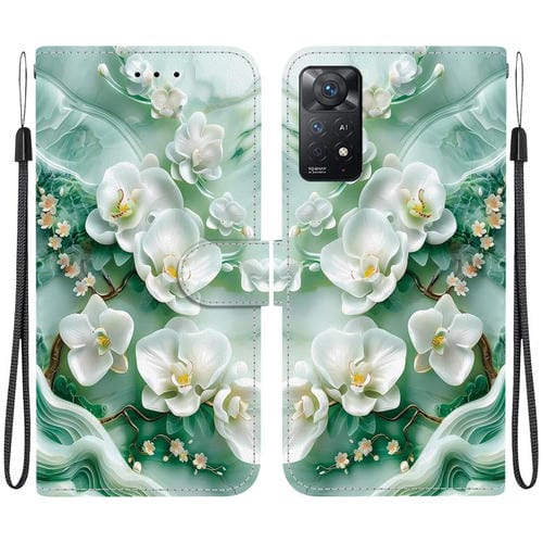 Funda de Cuero con Dibujo de Colores y Textura de Cristal para Redmi Note 12 Pro 4G (Flores de Jade)