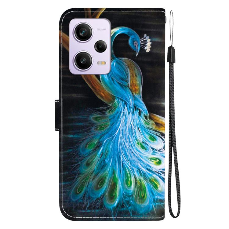 Funda de Cuero con Dibujo de Colores y Textura de Cristal para Redmi Note 12 Pro/Poco X5 Pro (Pavo Real)