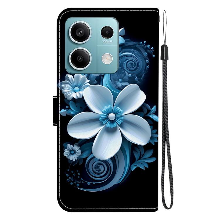 Funda de Cuero con Dibujo de Colores y Textura de Cristal para Redmi Note 13 5G (Orquídea Negra)