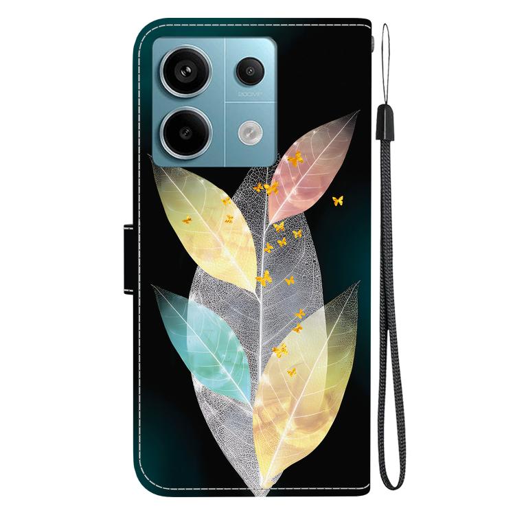 Funda de Cuero con Dibujo de Colores y Textura de Cristal para Redmi Note 13 Pro 5G (Hojas de Colores)