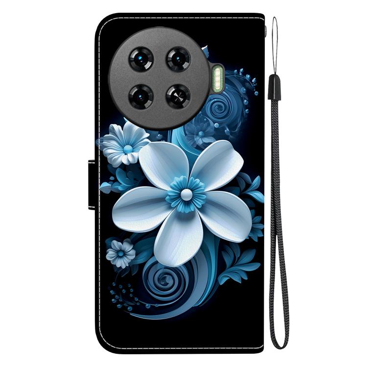 Funda de Cuero para Tecno Spark 20 Pro+ 4G con Dibujo de Colores y Textura de Cristal (Orquídea Negra)