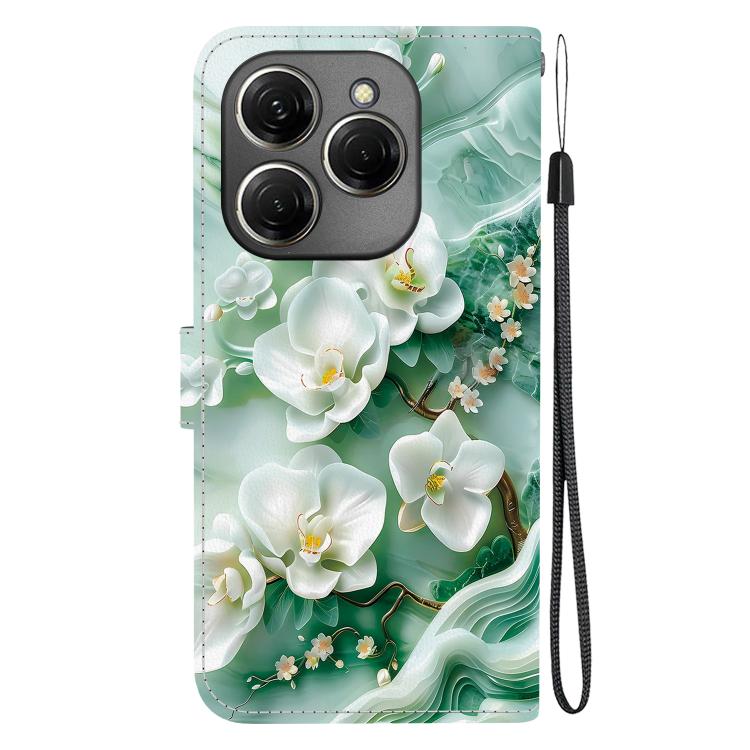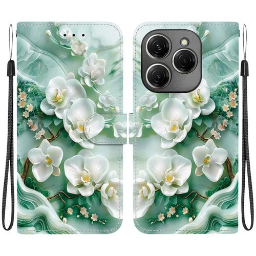 Funda de Cuero para Tecno Spark 20 Pro con Dibujo de Colores y Textura de Cristal (Flores de Jade)