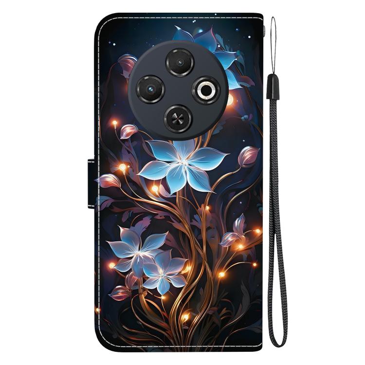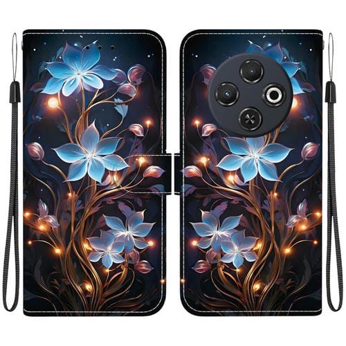 Funda de Cuero para Tecno Spark 30C con Dibujo de Colores y Textura de Cristal (Flor de Linterna Pequeña)