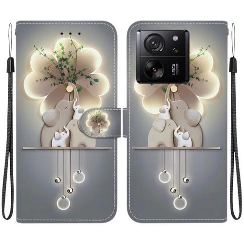 Funda de Cuero con Dibujo de Colores y Textura de Cristal para Xiaomi 13T/13T Pro (Elefantes)