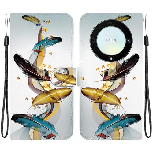 Funda de Cuero Honor X9A con Dibujo Color y Textura de Cristal (Plumas de Mariposa Doradas)
