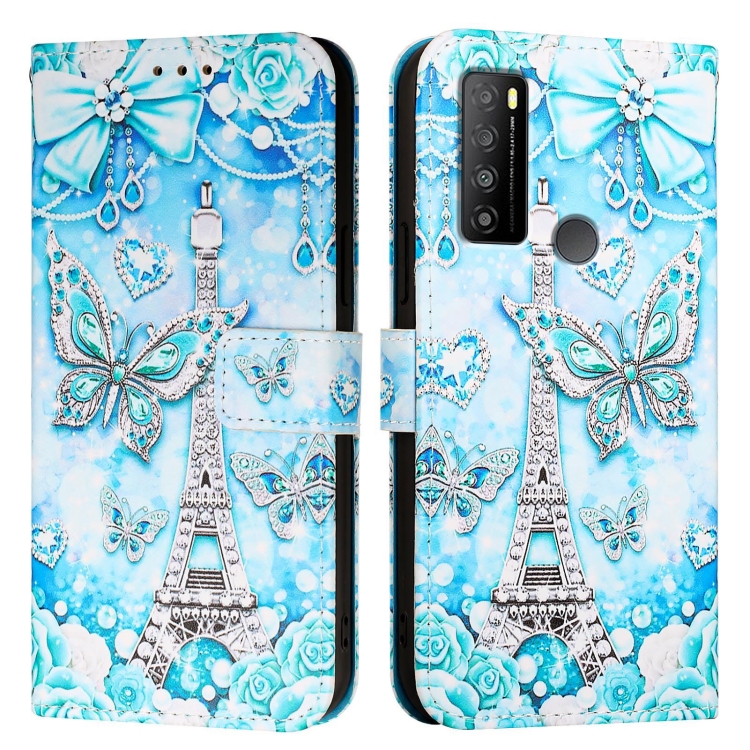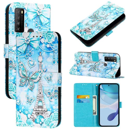Funda de Cuero para TCL 30Z T602Dl con Diseño Mariposa en Forma de Torre (Liso)