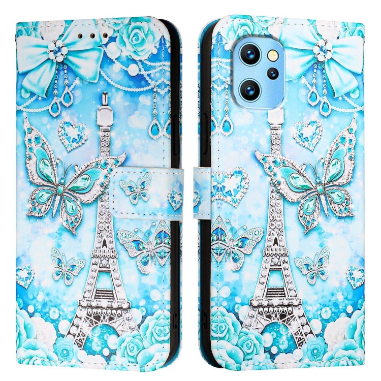 Funda de Cuero para Umidigi Power 7 Max con Diseño Mariposa en Torre (Liso)