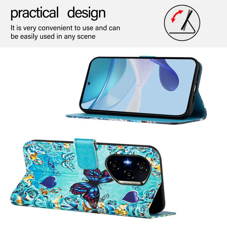 Funda de Cuero para Honor 300 Pro/300 Ultra con Diseño Mariposa de Amor y Tejido Liso