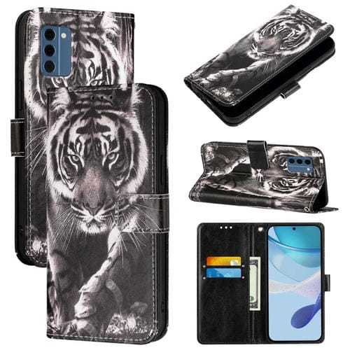 Funda de Cuero con Diseño Tigre para Nokia C300 (Blanco y Negro)