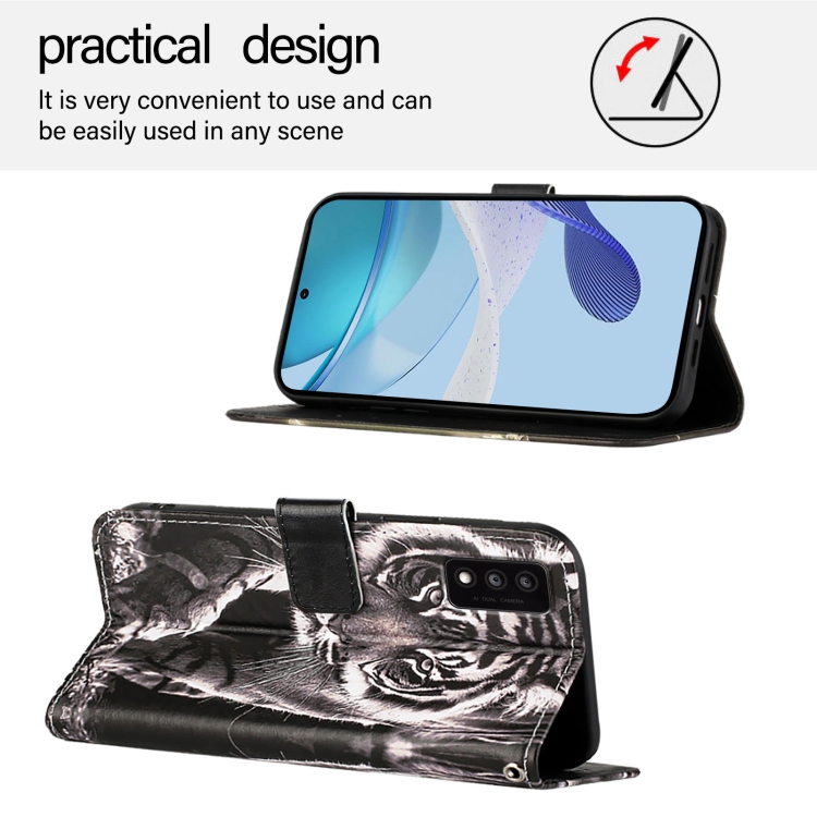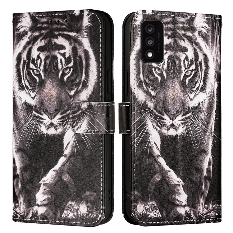 Funda de Cuero para TCL 30T T603Dl con Diseño de Tigre (Blanco y Negro)