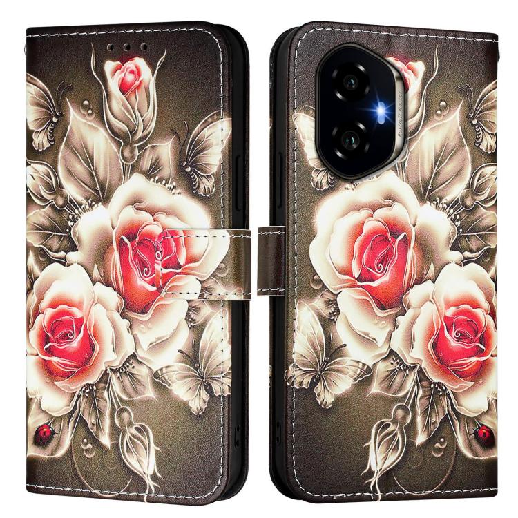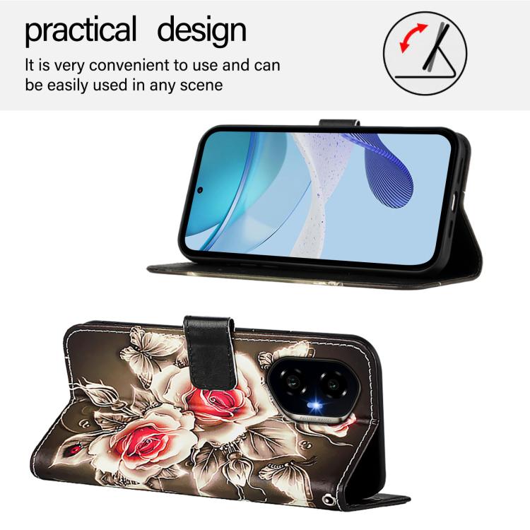Funda de Cuero con Diseño para Teléfono Honor 300 (Rosas Sobre Negro)