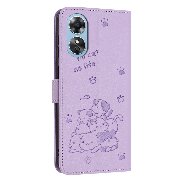 Funda de Piel con Diseño de Gatito En Relieve y Cordón para Oppo A38 4G/A18 (Morado)