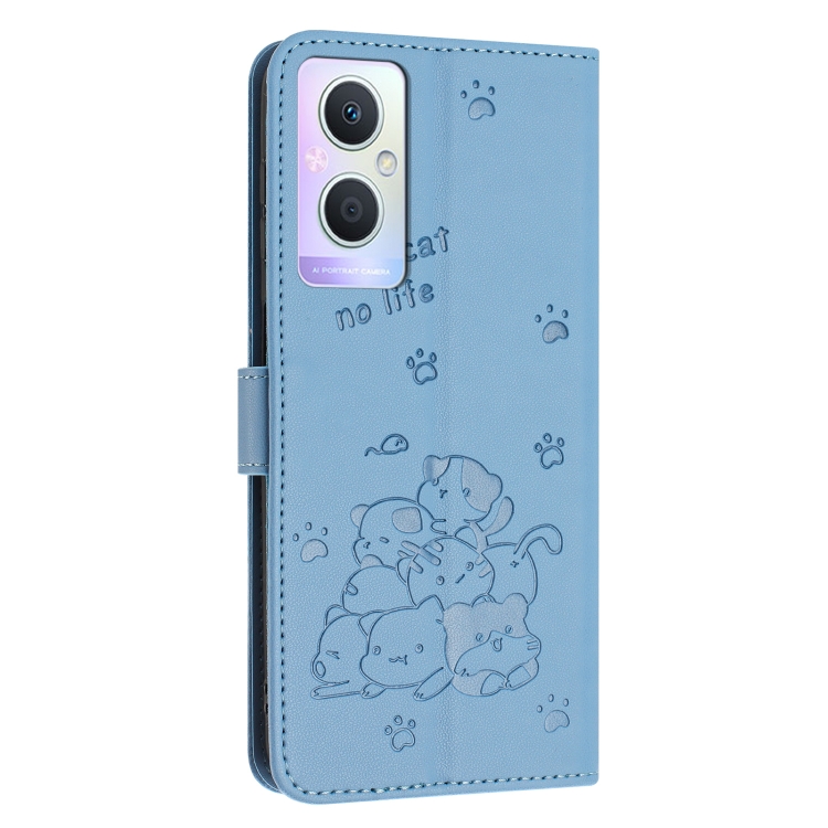 Funda de Cuero con Estampado de Gatito En Relieve para Oppo Reno7 Z (Azul)