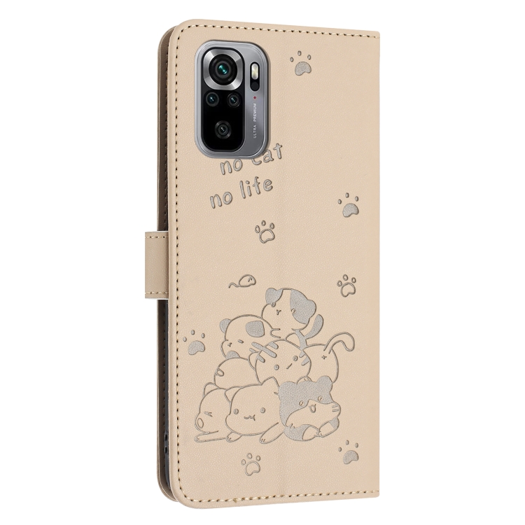Funda de Cuero con Estampado de Gatito y Cordón para Redmi Note 10 4G (Beige)