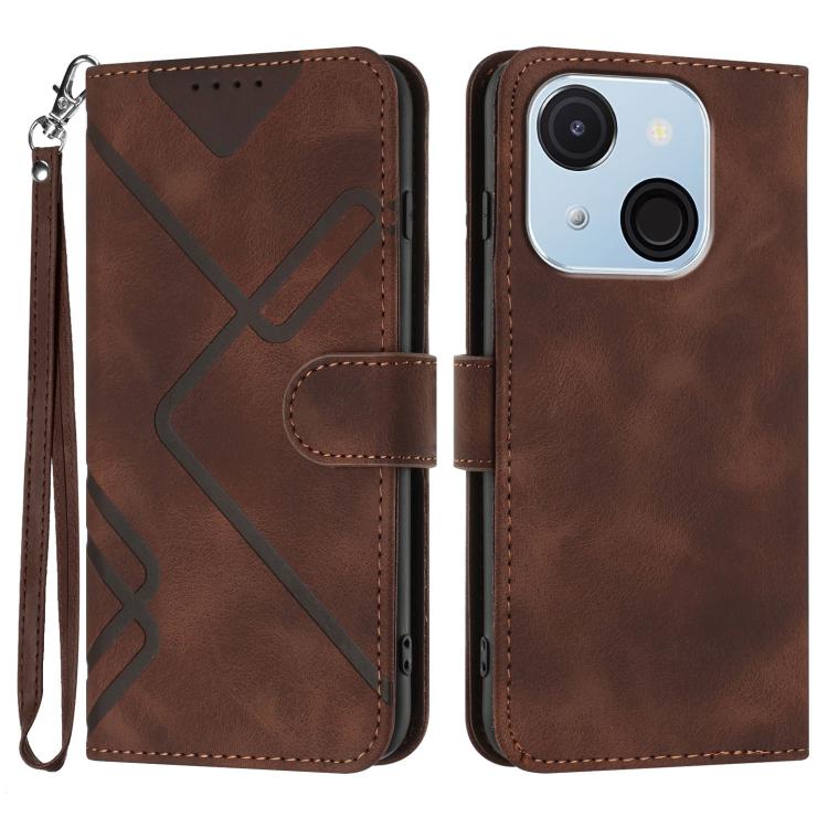 Funda de Cuero Itel A50C con Diseño de Líneas y Tacto Suave (Café)