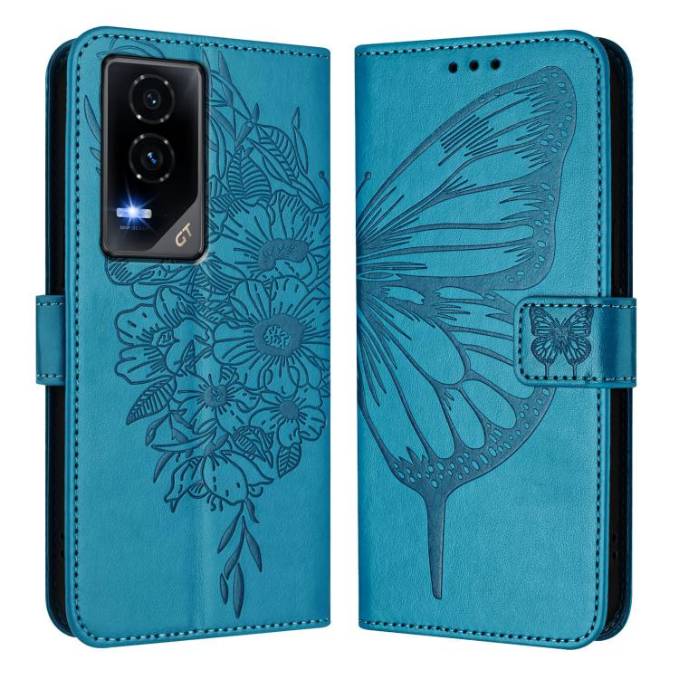 Funda de Cuero con Mariposa en Relieve para Teléfono For Honor Gt (Azul)