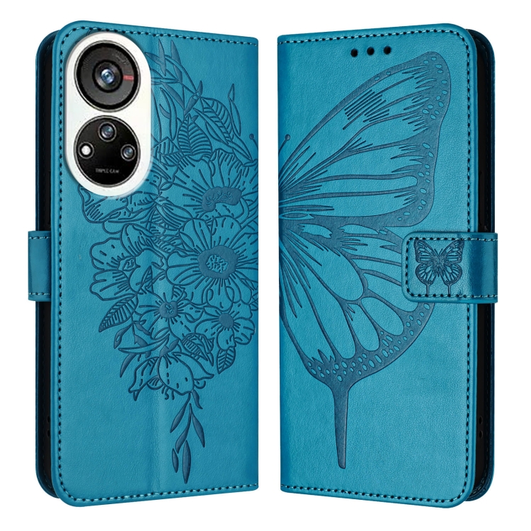 Funda de Cuero ZTE Blade V40S Diseño Mariposa En Relieve (Azul)