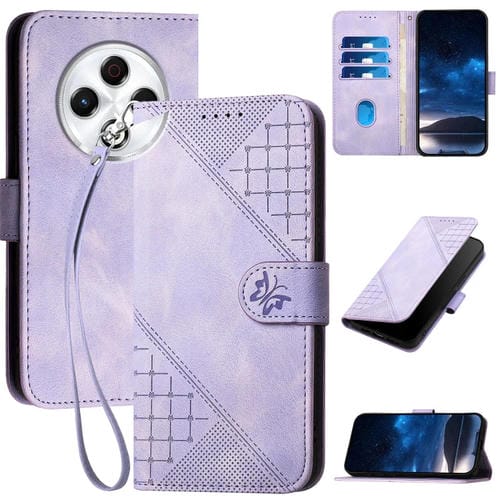 Funda de Cuero para Tecno Spark 30 4G con Diseño Mariposa en Relieve y Cordón (Morado Claro)